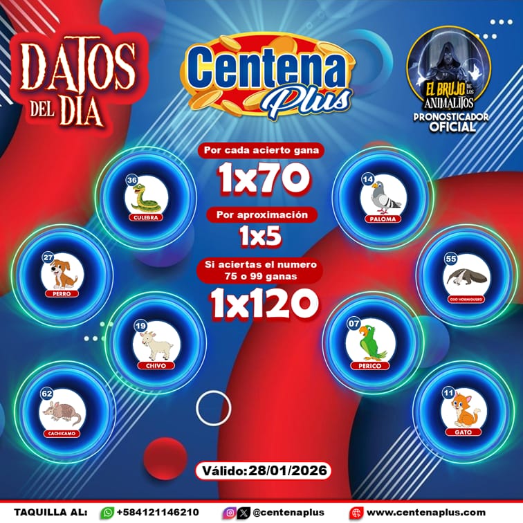 Pronosticos Pronósticos para Centena Plus hoy Miércoles 28-01-2026 Ene 28, 2026 El Brujo de Los Animalitos