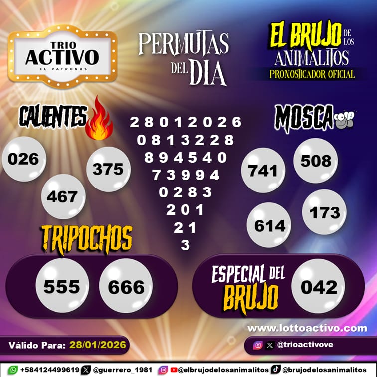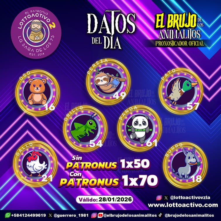 Pronosticos Pronósticos para Trio Activo El Patronus hoy Miércoles 28-01-2026 Ene 28, 2026 El Brujo de Los Animalitos